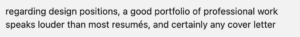 A “portfolio” is worth a thousand words.