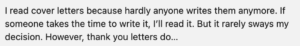 Thank you notes > cover letters.