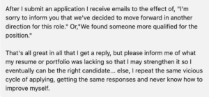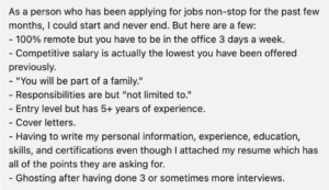 This one’s for the job seekers! The ones who are applying, the ones who are interviewing, and the ones who are STRUGGLING! The general consensus is that the market is hard (not that stating it helps). We asked our network to tell us what they hate about applying for jobs. Hopefully one of their responses will make you feel like you are not alone because applying for jobs sucks. To join in on the conversation or make a complaint, visit our poll here.