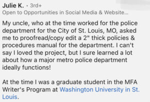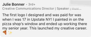 Getting the first person to believe in your creative genius is exhilarating! Like, wow! You’re going to pay ME to make something for YOU? Read about creative’s first paid gig and the cool clients who trusted the process!