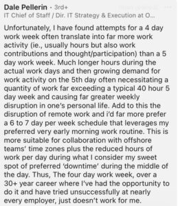 Yes. The answer is yes. Everyone wants a 4-Day work week. Well, everyone but the #grindneverstops crowd, but that’s their business, not ours. We want to have three days to refresh, recharge, and not dread going back to work for 5 days straight. Here’s what our LinkedIn audience had to say about the 4-day work week.