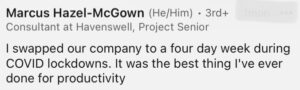 Next debate: Should we work 8 or 10 hours in the 4-days? Should we take a pay cut? Follow us on LinkedIn and Instagram to catch it!