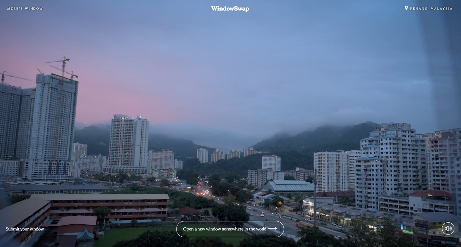 Wanderlust calling? Travel may be on hold, but that doesn’t mean the vistas have to be. The brainchild of a wife-and-husband team of creatives living in Singapore, Vaishnav Balasubramaniam and Sonali Ranji created the ultimate “quarantine project” — Window Swap, a website that lets you travel without moving by letting you gaze out of other people’s windows all around the world. From the comfort of your own home, you get the feel of being in a new place, without the pathogenic drama of planes, trains, or automobiles. Anyone, anywhere, can access Window Swap — just visit the site and find a video of a window to look out.